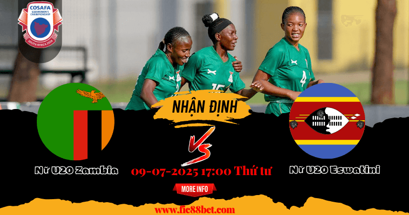 Nhận định Nữ U20 Zambia vs Nữ U20 Eswatini, Fic88bet phân tích thông tin lực lượng, đội hình dự kiến, dự đoán tỉ số, cũng như đưa ra nhận định trận đấu từ chuyên gia.