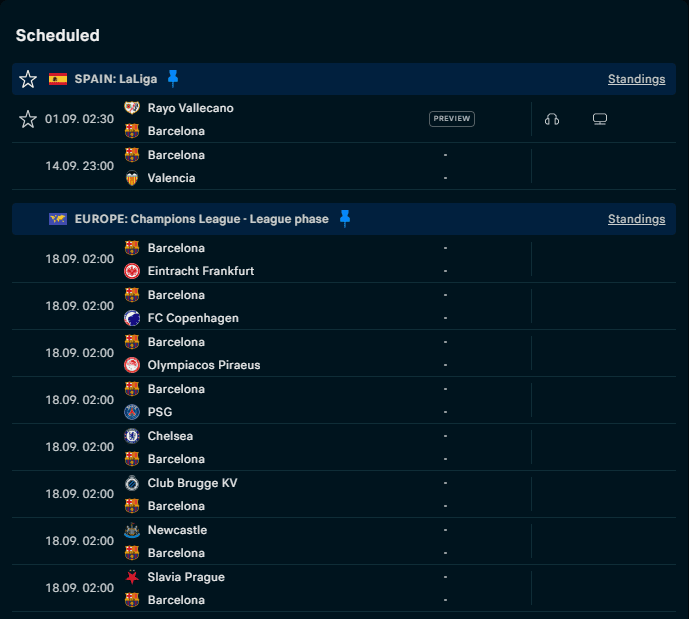 Lịch thi đấu Barcelona
