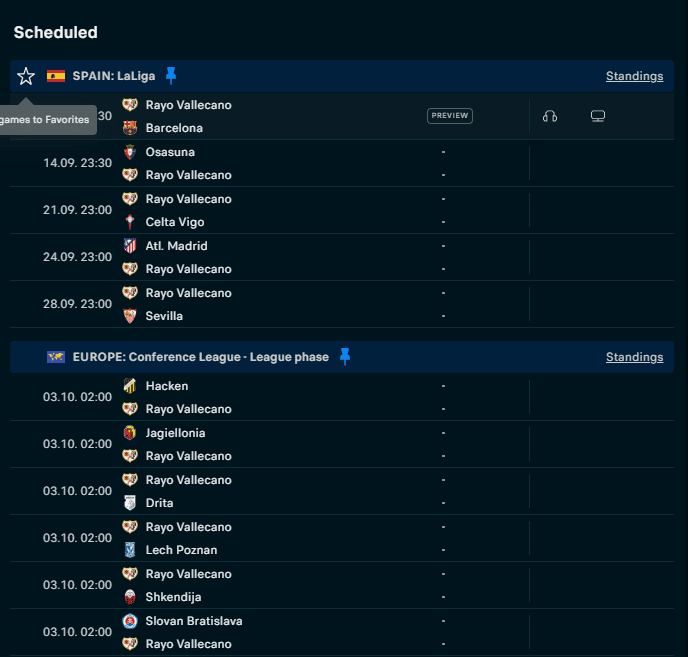 Rayo Vallecano đang có phong độ khá ổn định với 3 chiến thắng trong 4 trận gần nhất trên mọi đấu trường. Điểm sáng lớn nhất chính là Álvaro García, người vừa lập cú đúp trong chiến thắng 4-0 trước Neman, nâng tổng số bàn thắng và kiến tạo lên 5 trong 4 trận (4 bàn, 1 kiến tạo). Tuy nhiên, hàng phòng ngự của họ sẽ phải đối mặt với thử thách lớn khi vắng Abdul Mumin do chấn thương.