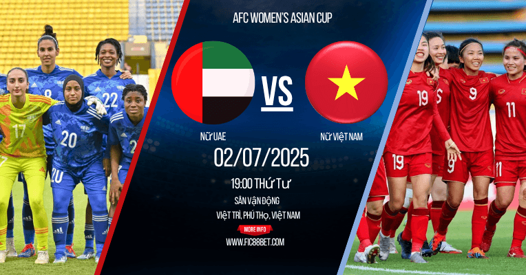 Soi kèo Nữ UAE vs Nữ Việt Nam, Fic88bet phân tích thông tin lực lượng, đội hình dự kiến, dự đoán tỉ số. Trận cầu giữa Nữ UAE vs Nữ Việt Nam diễn ra lúc 19h00 ngày 02/07/2025 tại SVĐ Việt Trì hứa hẹn sẽ là cuộc đối đầu quyết định ngôi đầu bảng E vòng loại AFC Women’s Asian Cup 2026. Với tư cách một chuyên gia phân tích bóng đá nữ châu Á qua hơn nhiều năm theo dõi các giải đấu khu vực, tôi sẽ mang đến nhận định Nữ UAE vs Nữ Việt Nam toàn diện và dự đoán Nữ UAE vs Nữ Việt Nam dựa trên dữ liệu chính xác nhất.